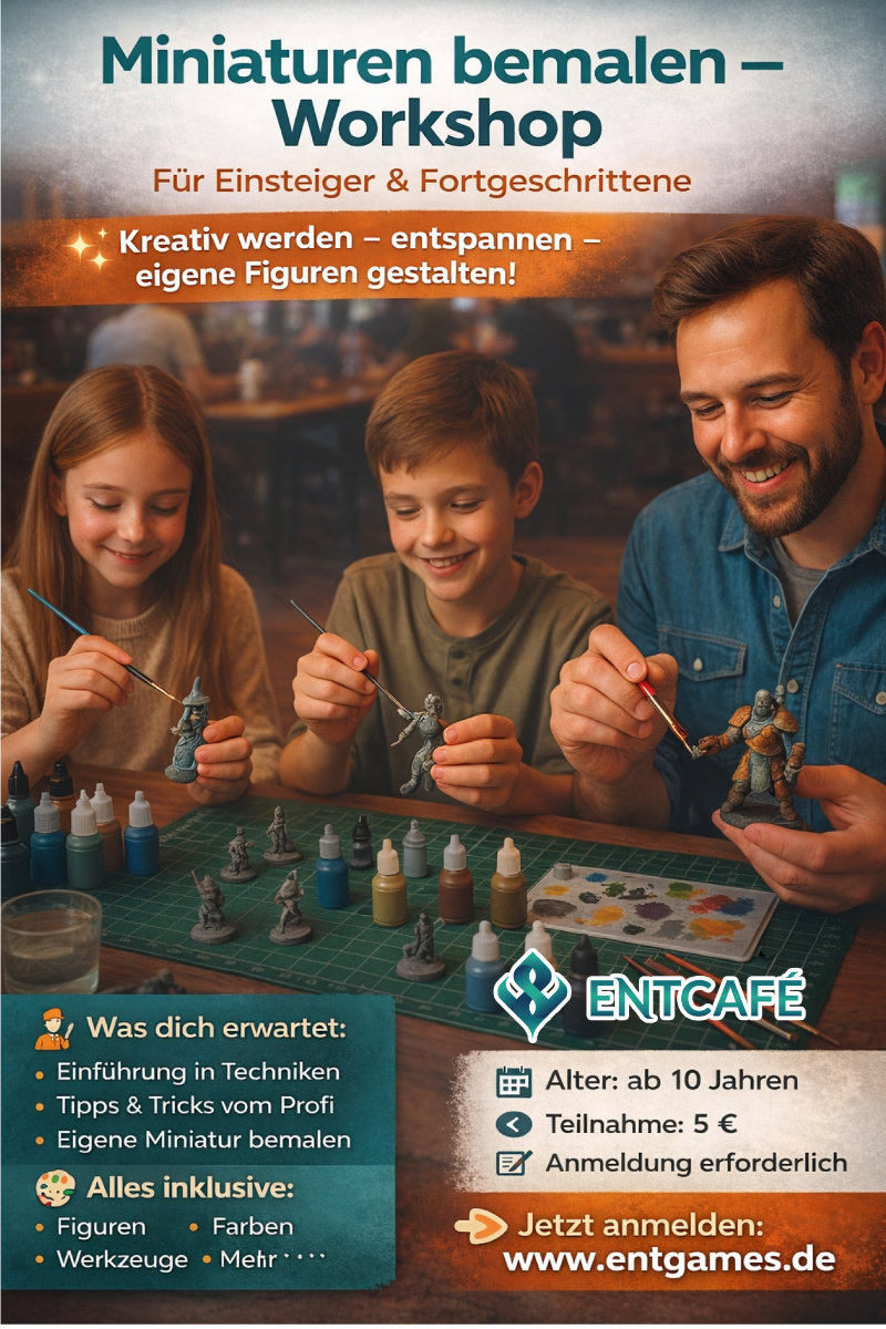 Gemeinsam mit den legendären Pinselschwingern aus Grünberg verwandelt ihr kleine Miniaturen in strahlende Helden, fiese Schurken oder einfach komplett verrückte Gestalten. Ein Pinselstrich – ZACK! – schon hat der Drache plötzlich Stil. Noch ein Klecks – BOOM! – der Zwerg hat mehr Charakter als dein Lieblings-Game-Avatar.
